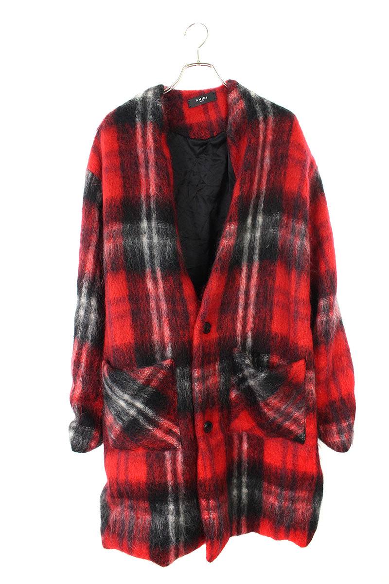 アミリ/AMIRI 【MOHAIR CARDIGAN COAT】モヘヤウールノーカラーチェックコート(L/レッド調)【SB01】【メンズ】【403091】【中古】bb14#rinkan*B