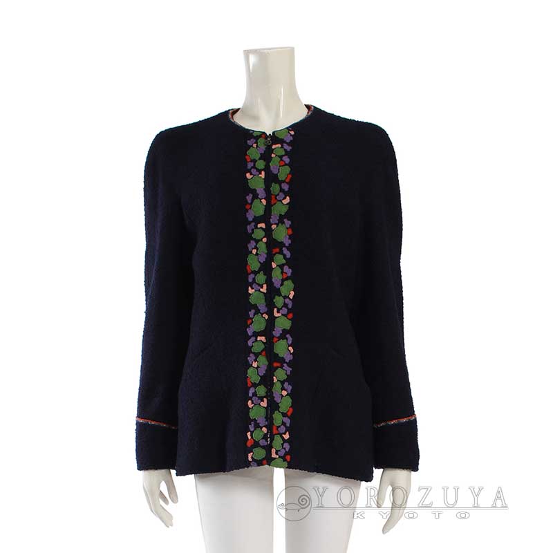 CHANEL シャネル ノーカラージャケット P09419 V05945 ウール ナイロン ネイビー/マルチカラー ジップアップ 【中古】